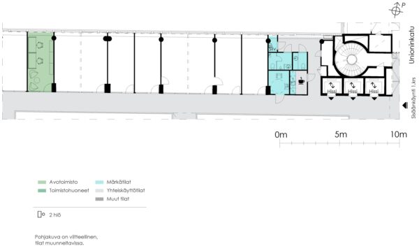 | Toimistotila | 2 | 276 m2 | Vapaa | Toimistotilaa, johon toteutetaan remontilla toivotut tilaratkaisut. |