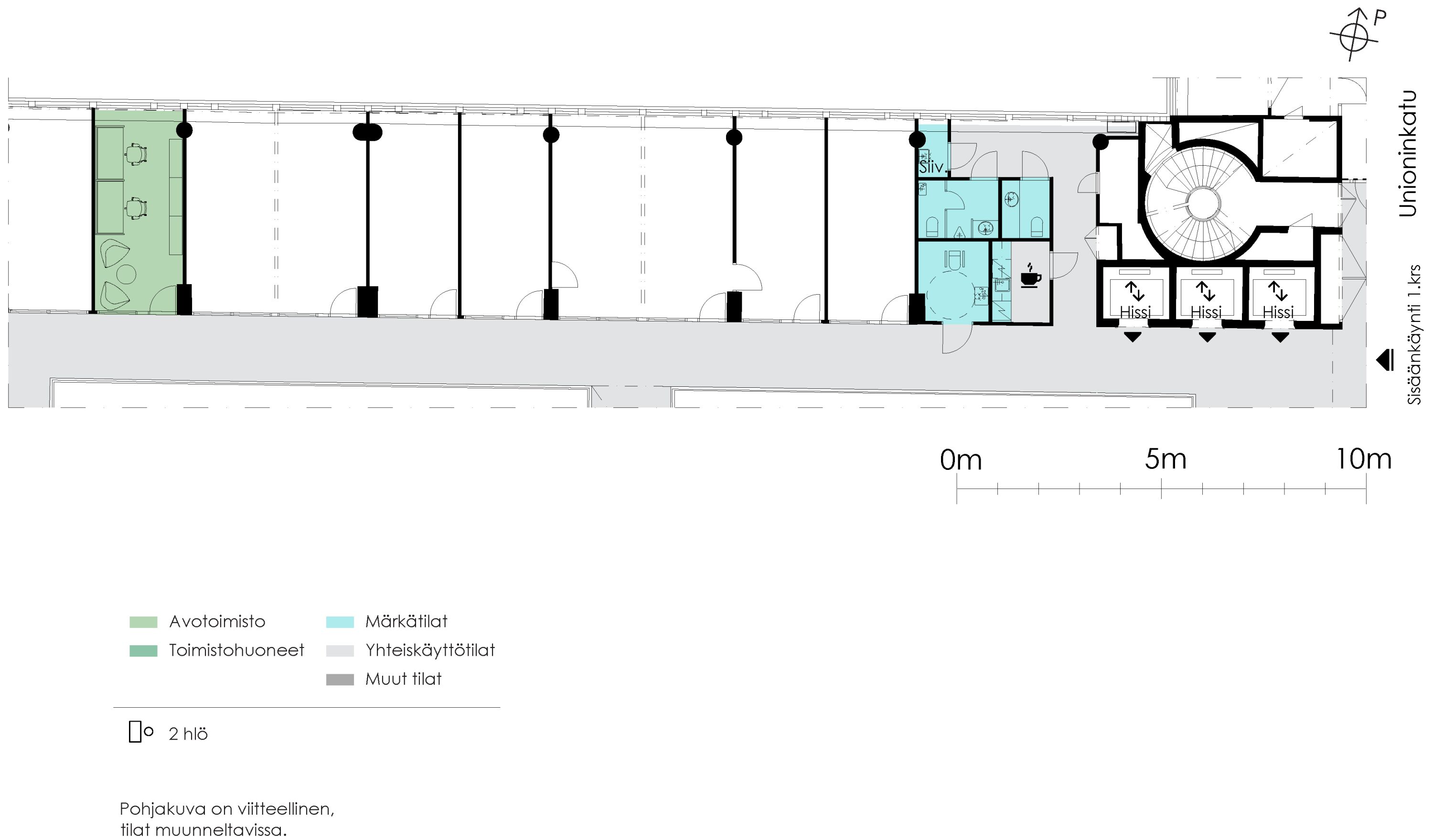 | Toimistotila | 5 | 500 m2 | Vapaa | Avotoimisto jossa tilankäyttö on tehokasta. Valoaukko takaa huoneiston ainutlaatuisen valaistuksen. |